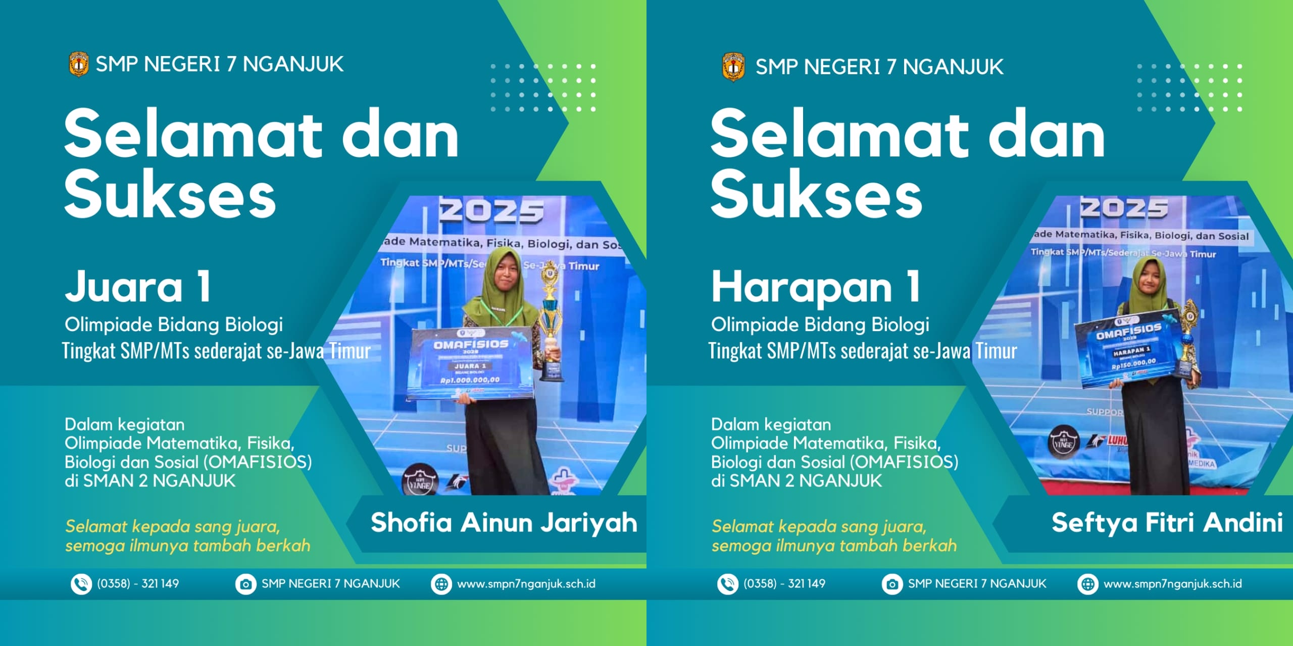 2 Siswi SMPN 7 Nganjuk Raih Prestasi Gemilang di OMAFISIOS Tingkat Jawa Timur